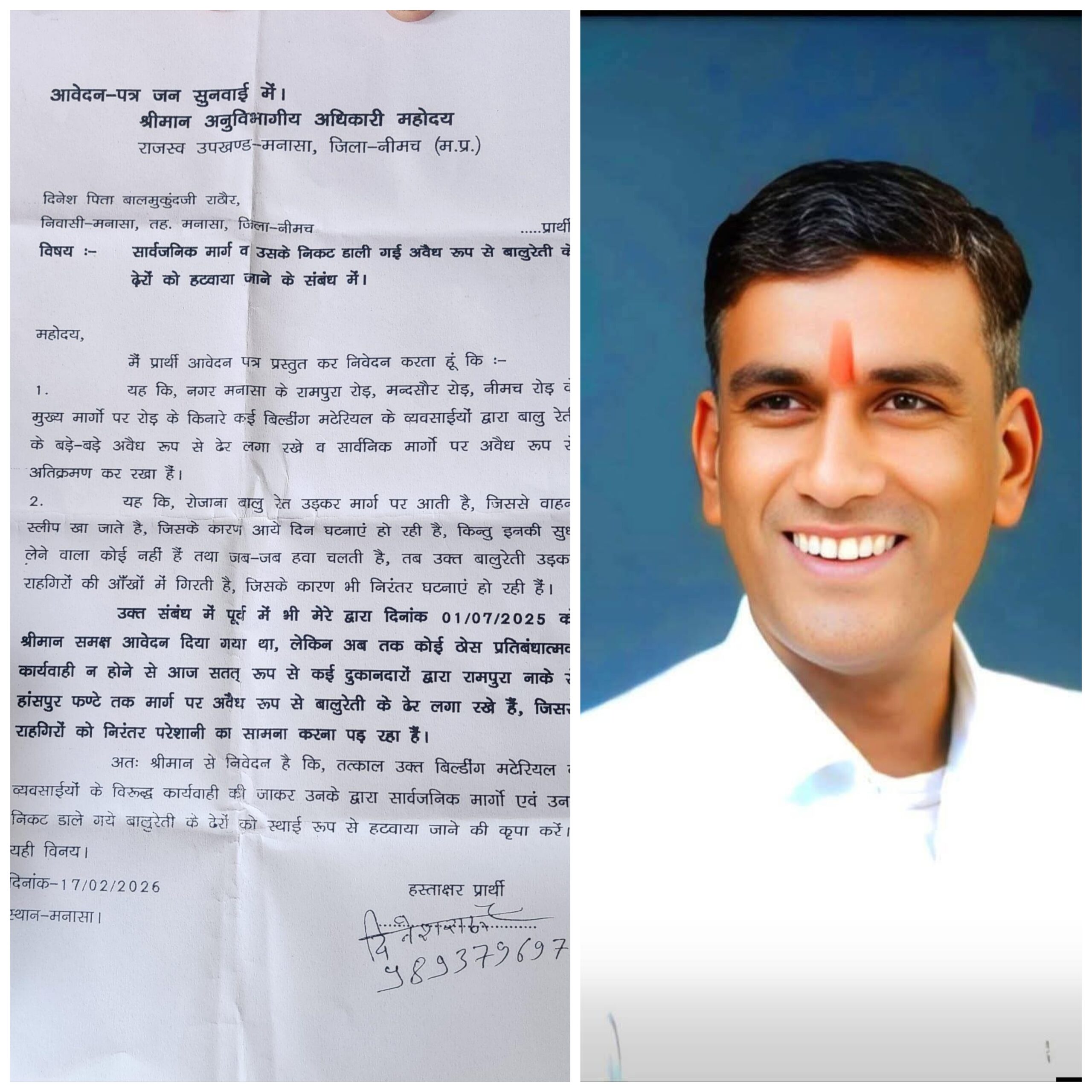 सडक किनारे बजरी माफियाओं का आतंक कभी भी हो सकता है सडक हादसा starhindinewslive@gmail.com — फ़रवरी 17, 2026 नीमच,,,, इस दिन बारिश होने का अलर्ट जारी 18-19 फरवरी को बारिश के आसार भोपाल starhindinewslive@gmail.com — फ़रवरी 16, 2026 श्रीमती कमला सकलेचा ज्ञान मंदिर में आयोजित हुई अभिभावकों की क्रिकेट प्रतियोगिता starhindinewslive@gmail.com — फ़रवरी 12, 2026 *ग्राम लुहारिया जाट थाना रतनगढ़ अवैध अफीम की खेती का खुलासा, 97 लाख 60 हजार रूपयें मुल्य के अवैध अफीम के 11600 नग कुल 9.76 क्विंटल हरे पौधे जप्त, आरोपी गिरफ्तार, पुलिस थाना रतनगढ़ की सफलता starhindinewslive@gmail.com — फ़रवरी 12, 2026 महाविद्यालय मनासा में संपन्न हुआ रोजगार प्रशिक्षण starhindinewslive@gmail.com — फ़रवरी 11, 2026 सेवा,संस्कार और संकल्प के साथ ग्राम मजीरिया में एनएसएस सात दिवसीय विशेष शिविर का समापन starhindinewslive@gmail.com — फ़रवरी 10, 2026 123…94 Next भारत श्रीमती कमला सकलेचा ज्ञान मंदिर में आयोजित हुई अभिभावकों की क्रिकेट प्रतियोगिता starhindinewslive@gmail.com — फ़रवरी 12, 2026 *ग्राम लुहारिया जाट थाना रतनगढ़ अवैध अफीम की खेती का खुलासा, 97 लाख 60 हजार रूपयें मुल्य के अवैध अफीम के 11600 नग कुल 9.76 क्विंटल हरे पौधे जप्त, आरोपी गिरफ्तार, पुलिस थाना रतनगढ़ की सफलता starhindinewslive@gmail.com — फ़रवरी 12, 2026 सेवा,संस्कार और संकल्प के साथ ग्राम मजीरिया में एनएसएस सात दिवसीय विशेष शिविर का समापन starhindinewslive@gmail.com — फ़रवरी 10, 2026 शासकीय औद्योगिक प्रशिक्षण संस्थान झांतला का शैक्षणिक औद्योगिक भ्रमण कालम्भा इंस्टीट्यूट सिंगोली में किया गया starhindinewslive@gmail.com — फ़रवरी 7, 2026 ग्राम मजीरिया में राष्ट्रीय सेवा योजना के स्वयंसेवकों ने चलाया स्वच्छता अभियान starhindinewslive@gmail.com — फ़रवरी 6, 2026 गरोठ में 45 लाख की खैर लकड़ी जब्त, पुलिस और वन विभाग की संयुक्त कार्रवाई starhindinewslive@gmail.com — फ़रवरी 3, 2026 मध्यप्रदेश मंदसौर में गूँजे कैंसर जागरूकता के नारे; स्वास्थ्य विभाग और सामाजिक संगठनों ने निकाली विशाल रैली starhindinewslive@gmail.com — फ़रवरी 4, 2026 गरोठ : खेत में काम कर रही महिला के कान चीरकर सोने की बालियां ले उड़े बदमाश, चोरों के हौसले हुए बुलंद starhindinewslive@gmail.com — जनवरी 17, 2026 मंदसौर में चली गोली एक साथ तीन क़ी जीवन लीला समाप्त starhindinewslive@gmail.com — दिसम्बर 31, 2025 स्कॉर्पियो ने तीन छात्रों को रौंदा, दो की ये हालत, स्कॉर्पियो छोड़ भागे आरोपी अजिमुल्ला खान — नवम्बर 9, 2025 बसई चंबल पुलिया पर भीषण हादसा, बाइक सवार महिला नदी में गिरी; तैरकर बची जान अजिमुल्ला खान — अक्टूबर 30, 2025 गरोठ भीषण सड़क हादसा सिलेगड़ पुलिया पर एक्सीडेंट ऑल्टो कार एव बाइक आपस में टकराए अजिमुल्ला खान — अक्टूबर 22, 2025 नीमच सडक किनारे बजरी माफियाओं का आतंक कभी भी हो सकता है सडक हादसा starhindinewslive@gmail.com — फ़रवरी 17, 2026 नीमच,,,, इस दिन बारिश होने का अलर्ट जारी 18-19 फरवरी को बारिश के आसार भोपाल starhindinewslive@gmail.com — फ़रवरी 16, 2026 महाविद्यालय मनासा में संपन्न हुआ रोजगार प्रशिक्