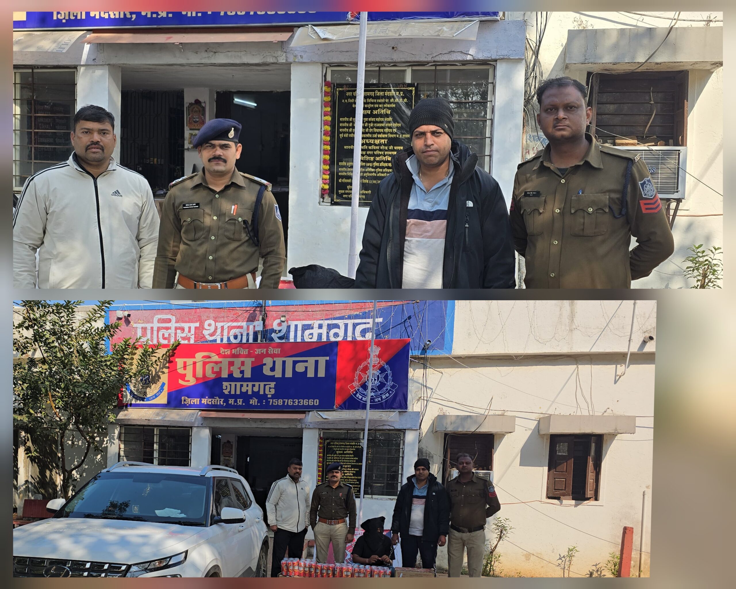 पुलिस थाना शामगढ ने की अवैध शराब तस्करों के विरुद्ध बड़ी प्रभावी कार्यवाही, 01 आरोपी को गिरफ्तार कर उसके कब्जे वाली वेन्यू कार से जब्त की 322 बल्क लीटर अवैध अंग्रेजी शराब !