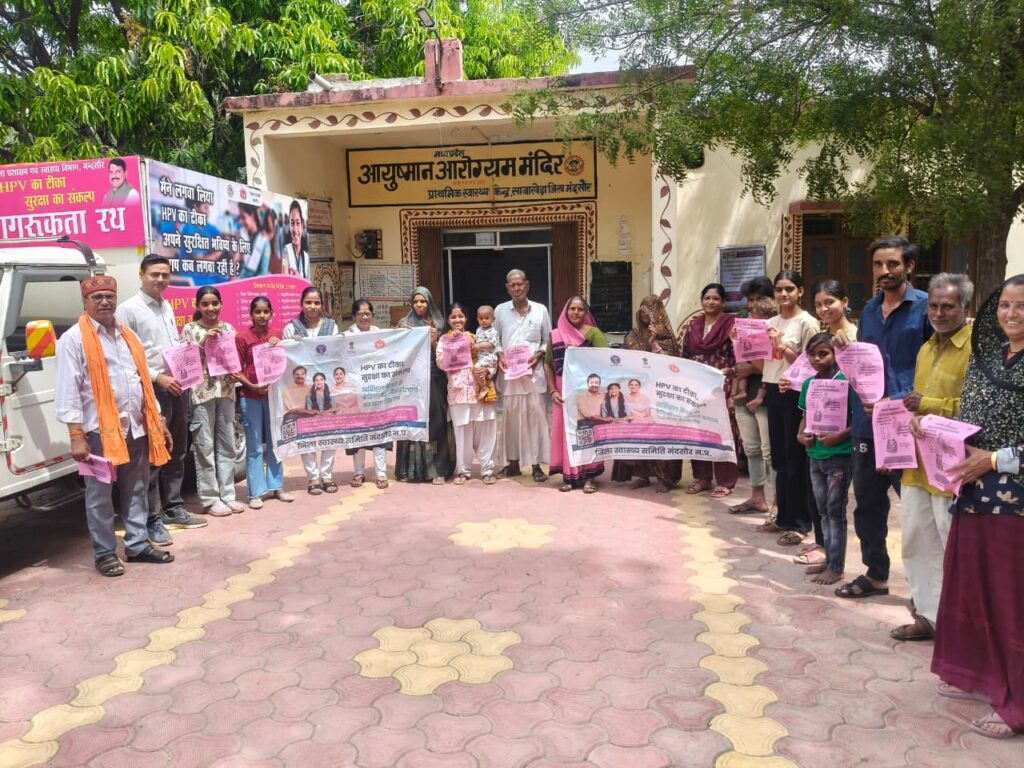 *HPV वैक्सीनेशन जागरूकता अभियान*एचपीवी वैक्सीनेशन जागरूकता रथ ग्राम साबाखेड़ा एवं धुंधडका मैं मन्दसौर, कलेक्टर महोदया श्रीमती अदिति गर्ग के मार्गदर्शन में और मुख्य चिकित्सा एवं स्वास्थ्य अधिकारी डॉ. जी एस चौहान के सानिध्य में HPV वैक्सीनेशन जागरूकता रथ ग्राम साबाखेड़ा एवं धुंधडका में वैक्सीनेशन जागरूकता अभियान चलाया जा रहा है। इस अभियान के तहत, 14-15 वर्ष की किशोरियों को सर्वाइकल कैंसर से बचाने के लिए जागरूकता रथ गांव-गांव में भ्रमण कर रहा है। स्वास्थ्य विभाग के कर्मचारी जगदीश खींची के द्वाराजागरूकता रथ के माध्यम से अभिभावकों को जागरूक किया जा रहा है कि वे अपनी 14-15 वर्ष की बालिकाओं को HPV वैक्सीन जरूर लगवाएं। यह वैक्सीन पूरी तरह सुरक्षित है और इसके कोई साइड इफेक्ट नहीं होते हैं।मुख्य चिकित्सा एवं स्वास्थ्य अधिकारी डॉ. जी एस चौहान ने बताया कि सर्वाइकल कैंसर एक गंभीर बीमारी है, जिसे समय पर टीकाकरण के माध्यम से रोका जा सकता है। डा चौहान ने सभी अभिभावकों से अपील की है कि वे अपनी बेटियों का टीकाकरण जरूर करवाएं।- अपने नजदीकी स्वास्थ्य केंद्र या स्कूल में संपर्क कर अपनी बेटियों का टीकाकरण करवाए जगदीश खीची ने सभी नागरिको एवं जनप्रतिनिधि पत्रकार बंधु समाज सेवकशिक्षकों और धर्मगुरुओं से अपील की है कि वे इस अभियान में सहयोग प्रदान कर इसे सफल बनाने में अहम भूमिका निभाएं,,